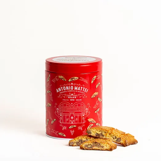 프라토 정통 비스코티. 다크초콜릿이 들어간 레드 틴 패키지.