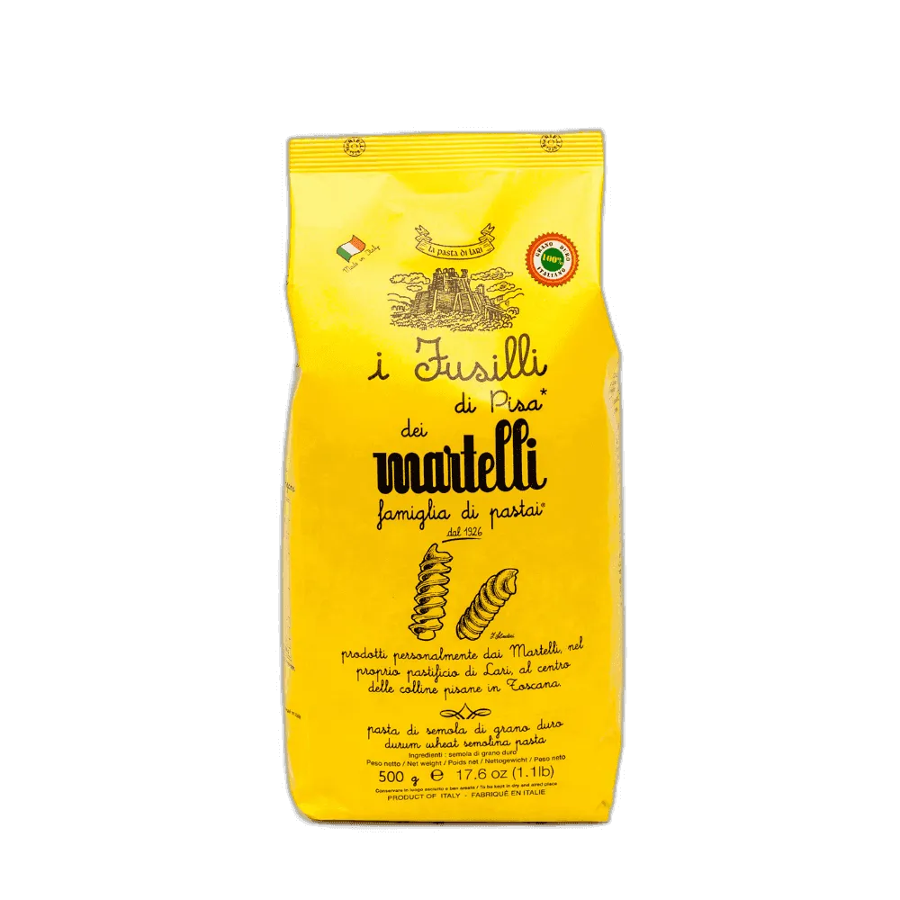 푸실리 디 피사(Fusilli di Pisa)는 마르텔리의 나선형 숏 파스타입니다. 나선형 구조로 소스 흡착이 강력하며, 두꺼운 나선이 소스를 안쪽까지 감싸 풍미를 극대화합니다.